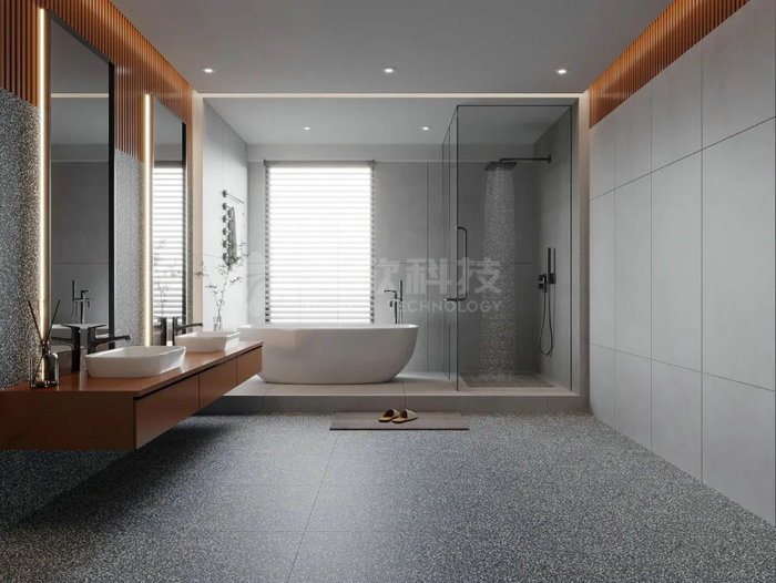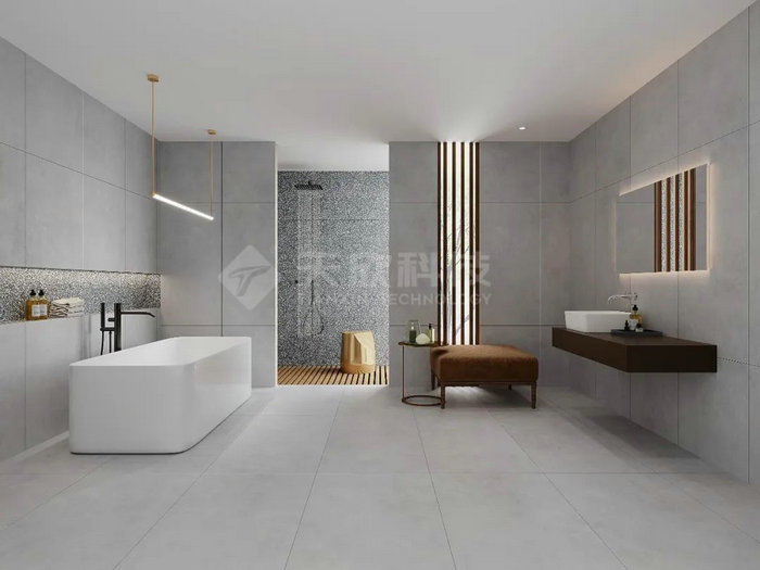 迷·水泥現代瓷磚自帶灰紋和經歷長時間使用后的自然龜裂紋理,天生高級感,處處透著簡約、靜謐、輕松、溫馨的氣質,讓為美好生活奮斗的人們能享受安閑舒適的休憩時光。
